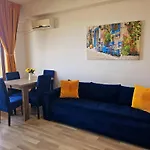Die 60 m² große Ferienwohnung Mamaia befindet sich ungefähr 5 Gehminuten vom Ego Club Mamaia entfernt sowie in unmittelbarer Nähe zu verschiedenen Sehenswürdigkeiten der Gegend. Dieses Apartment am Strand bietet eine Terrasse mit einem Küsten- Blick aufs Meer.